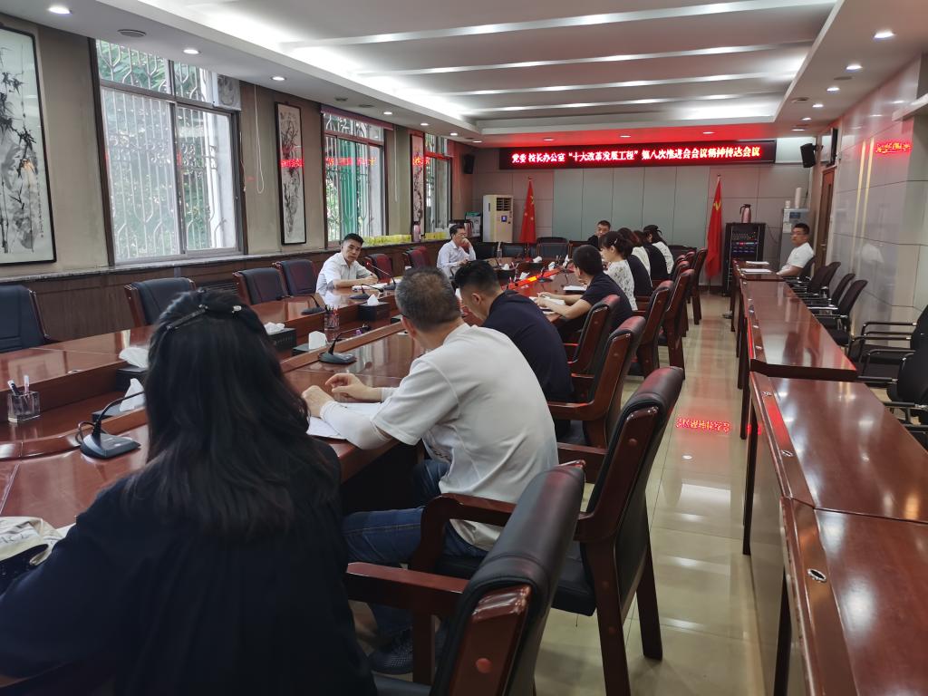 5月17日上午,我校召开“十大改革发展工程”第八次推进会。会后,党委、校长办公室第一时间召开传达学习会议,办公室主任张军主持会议,办公室全体人员(含教职工、临聘人员)参加会议。办公室全员覆盖传达学习会议精神,明确具体工作部署安排,压实工作责任。