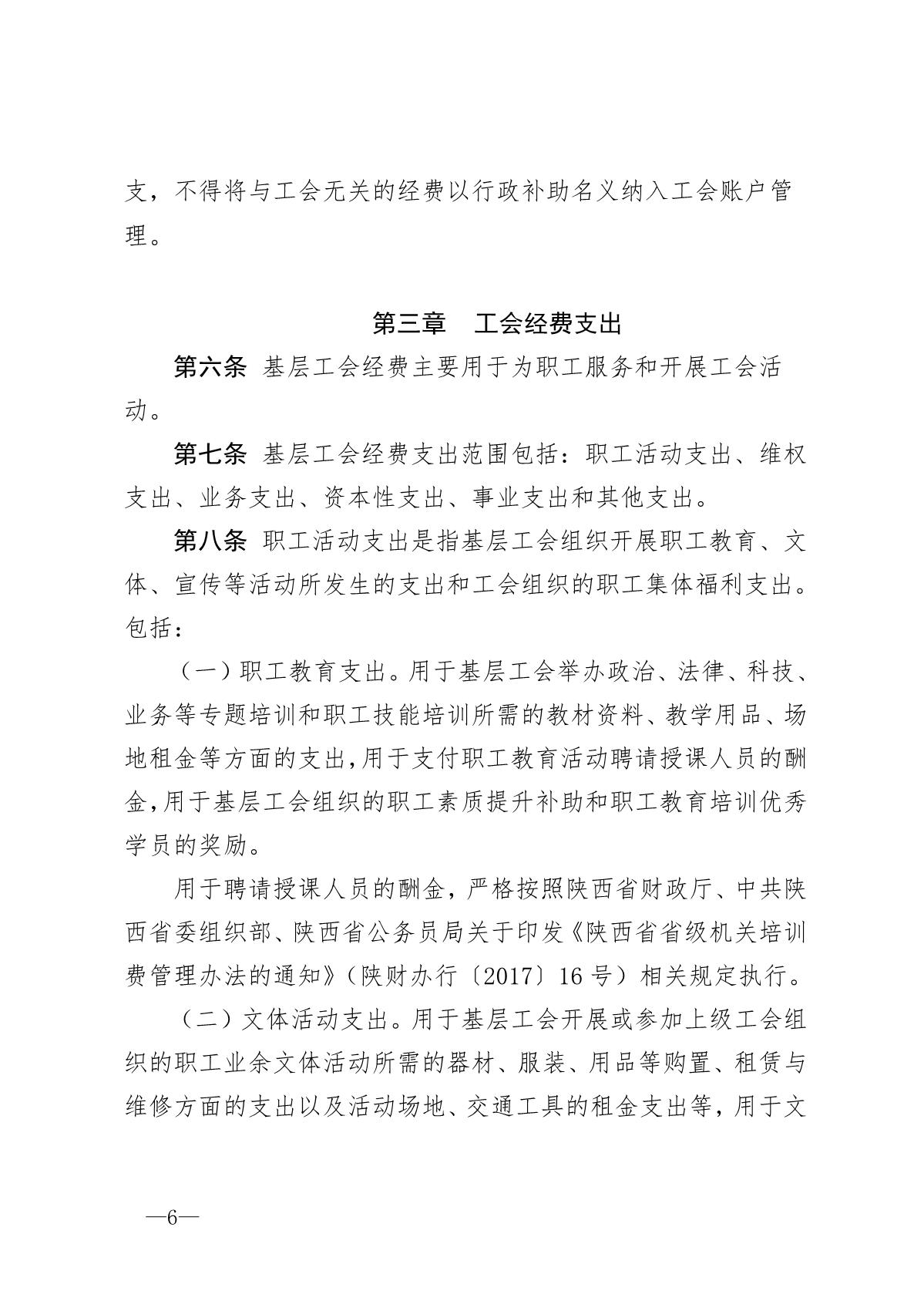 《陕西省基层工会经费收支管理办法实施细则》陕工发【2019】20号