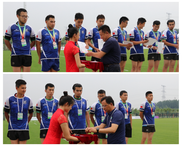 橄榄球竞委会副主任、中国橄榄球协会竞训部部长于晗和鄠邑区委副书记、区长李化分别为亚军颁发证书和奖牌