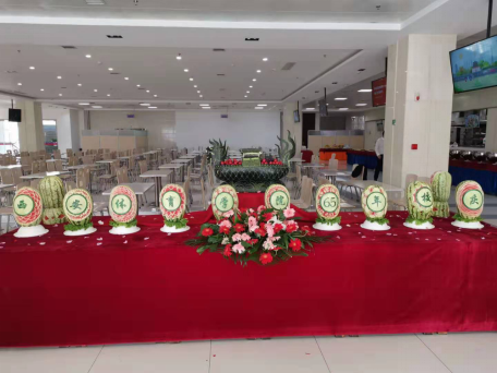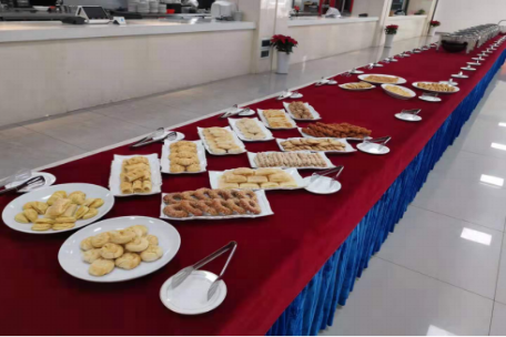 (五)饮食在安,制定校庆菜单。为做好校庆餐饮接待工作,餐饮中心召开专题会讨论校友用餐形式、确定用餐时间、餐券发放、菜品菜谱等问题。为了使校友和各位来宾品到美味地道的“西体味道”,餐饮中心经过反复讨论最终确定了一份集营养、健康、卫生、美味于一体的菜谱,并对菜品的种类、口味及备餐量提前做好安排。校庆期间就餐人数大,就餐时间集中,为保障校友及师生来宾的就餐,餐饮中心员工连续作战不怕疲劳,备餐到深夜。同时,餐饮中心对工作人员进行了服务礼仪培训,规范日常行为,力求服务品质也得到提升。