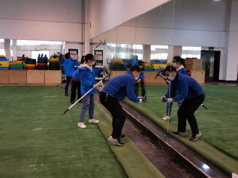 场馆中心工作人员对我校场馆(地)进行全面清洁、消毒,对教学器材、器具等易接触物品进行重点消毒,工作人员认真、专业、细致、周到,合理使用消毒液、消毒水,在保证上课环境健康安全的同时避免过度消毒。