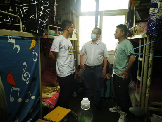2020年5月8日我校第一批学生返校,校长朱元利、党委副书记刘子实、分管校领导李富生在后勤管理处(集团)处长许伟、副处长黄岗等相关负责人陪同下检查后勤防疫相关工作开展情况。朱元利、刘子实检查学生餐厅,实地查看学生错峰就餐方案实施情况,询问学生饮食情况,强调,学生餐厅一定要注意科学合理消毒通风,加强饮食安全把控;李富生到访学生公寓,亲切问询学生近况,叮嘱学生注意个人防护,尽快适应返校复课节奏,以积极的心态面对毕业求职。