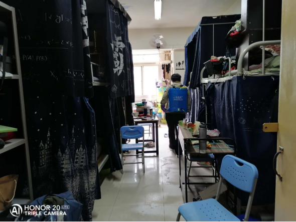 (二)后勤管理处(集团)学生公寓管理中心在对工作人员进行体温检测、登记后,严格按照校医院要求做好学生公寓清洁、消毒、通风及学生体温检测工作。