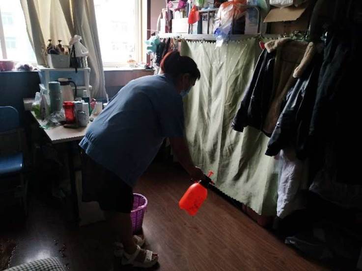 (一)后勤管理处(集团)学生公寓管理中心在对工作人员进行体温检测、登记后,严格按照校医院《学生公寓消毒指南》要求做好学生公寓清洁、消毒每日2次,通风工作每日3次,每次30分钟,以及学生体温检测工作。
