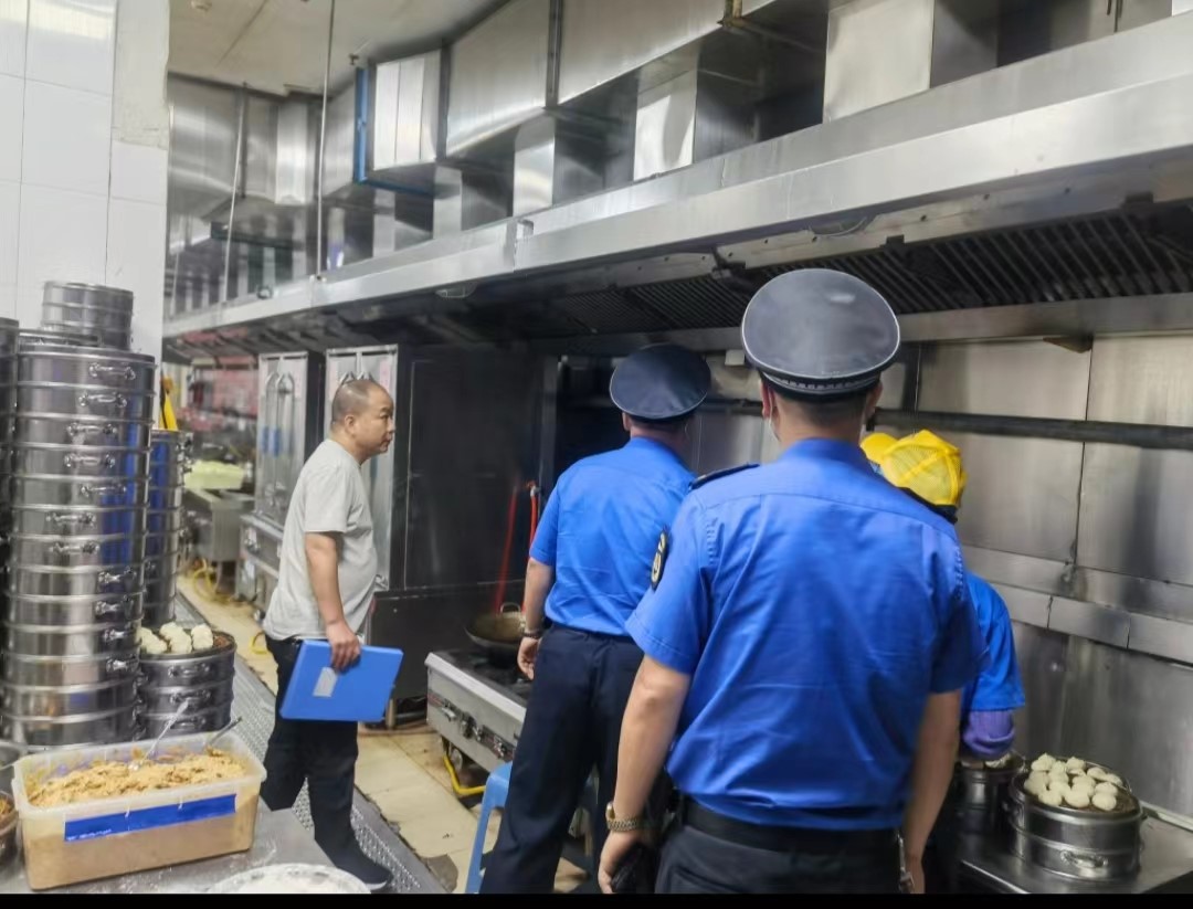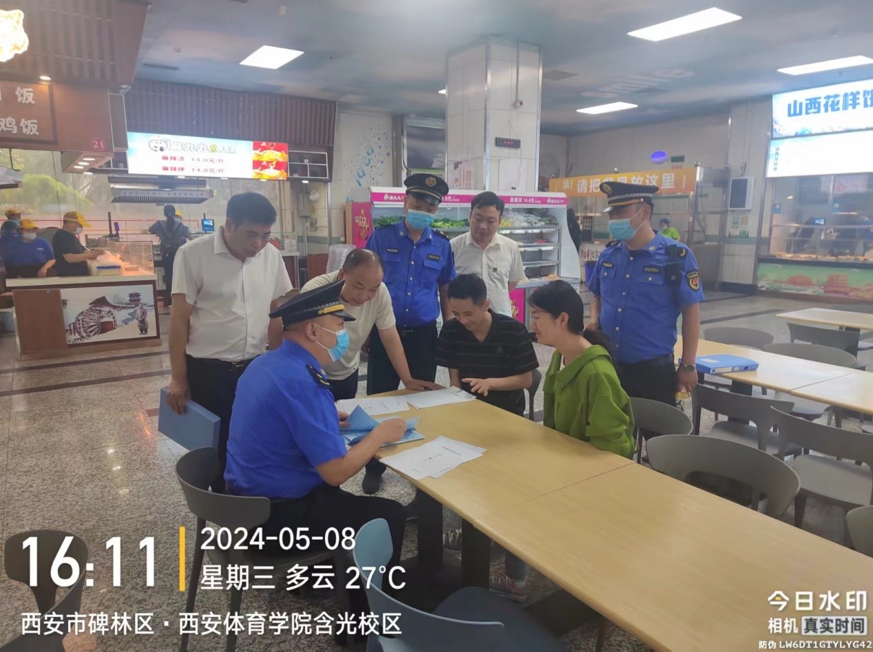 5月8日,碑林区城市管理执法局来我校对学生餐厅油烟排放情况进行督导检查。