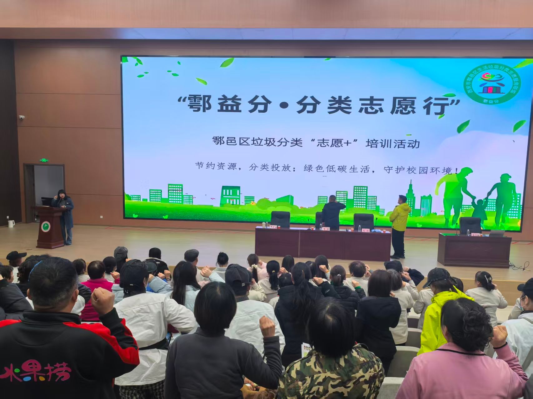 2025年11月27日(周四),在鄠邑区教学综合楼3楼报告厅,我们齐聚一堂,共同参与 “鄠益分 分类志愿行” 垃圾分类进校园主题活动。由学生代表若干、学生餐厅一至三楼餐饮公司一线员工、外围物业人员、公寓楼管等参加。出席本次活动的有鄠邑区垃圾分类中心副主任王维,鄠邑区垃圾分类中心宣传科科长刘振。