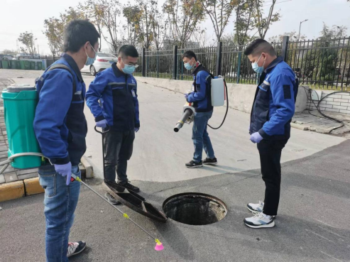 工作人员正在消杀污井