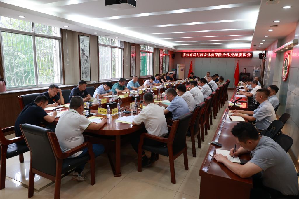 省体育局武术运动管理中心、足球运动管理中心、拳击跆拳道运动管理中心、社会体育运动发展中心、体育科学研究所及我校党委校长办公室、教务处、竞训处、人事处、财务处、科研处、继续教育学院、竞技体校、鄠邑校区管委会、基建处等部门负责人和体育教育学院、运动训练学院、武术学院、运动休闲学院、足球学院负责人参加座谈。