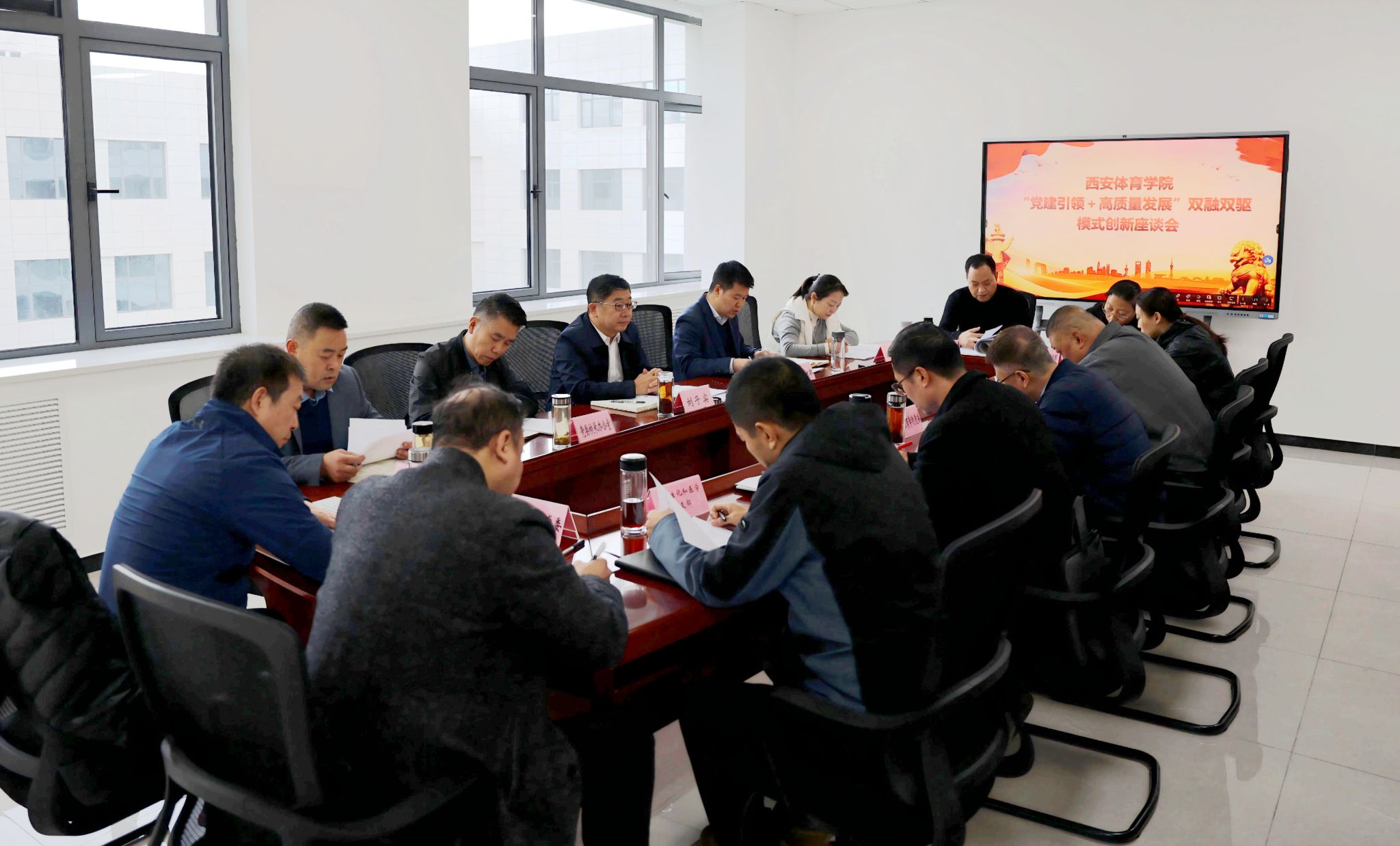 体育教育学院党委书记卢喆、运动训练学院党委书记高月宏、竞技体校与继续教育学院党总支王刚作为校级党建“双创”建设立项单位负责人,运动与健康科学学院生理生化和医学党支部书记刘军作为首批全国高校“双带头人”教师党支部书记“强国行”专项行动团队负责人,体育新闻与传媒学院学生党支部书记文玥作为第四批陕西省高校党建工作样板支部代表,从一年来的工作开展情况、取得的成效、下一步工作思路等三个方面依次做了交流汇报。