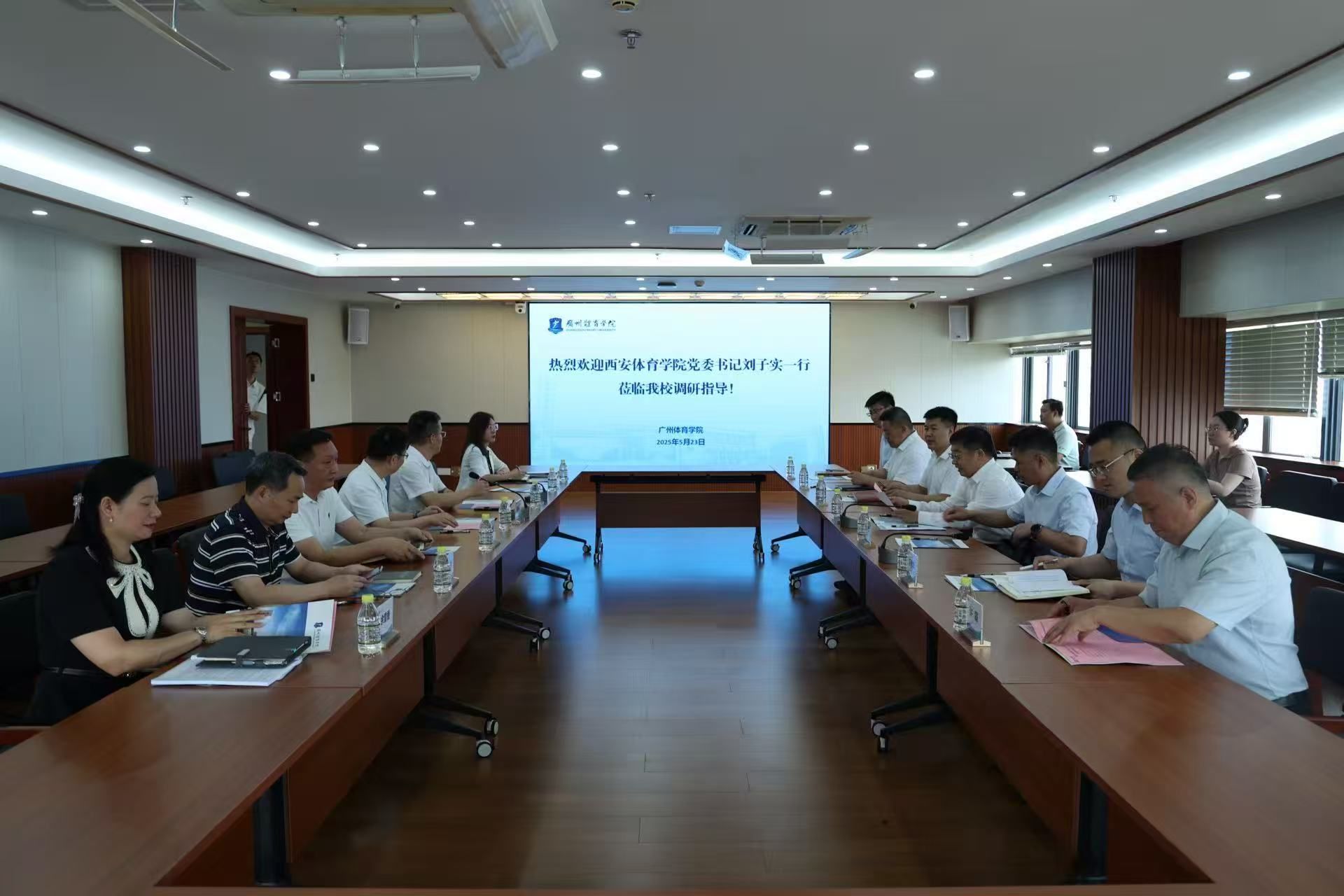 5月23日上午,刘子实带队到广州体育学院调研,广州体育学院党委书记米银俊详细介绍博士点建设路径、国字号学院特色培育模式与学科建设协同发展机制。双方围绕党建引领、学科专业建设、体教融合、博士点申报关键环节、产学研一体化平台搭建、就业服务等方面进行深入交流。刘子实带队实地考察国家羽毛球学院与运动医学康复中心,重点学习“训科医教一体化”培养模式——通过运动生物力学实验室、智能训练场馆与临床康复资源的整合,实现高水平运动员培养与运动健康服务的双向赋能。