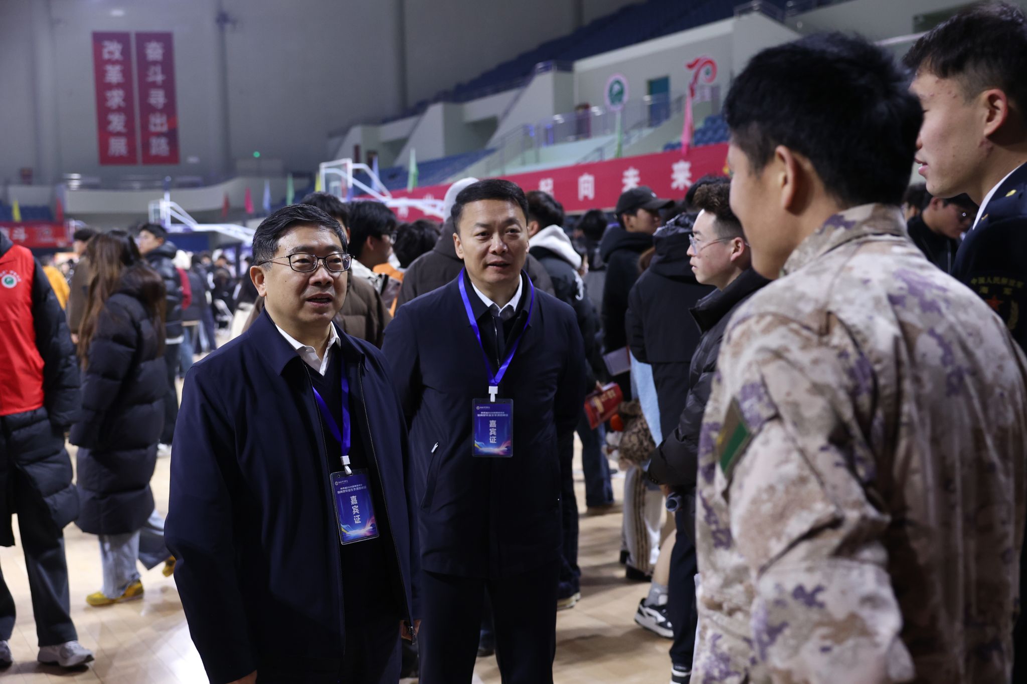 本网讯 12月14日,陕西省2026届普通高校体育类毕业生专场招聘会在我校鄠邑校区举办。本次招聘会由陕西省教育厅主办,我校承办。校党委书记刘子实、党委副书记马海涛到场详细了解参会单位用人需求情况,指导和鼓励毕业生就业。