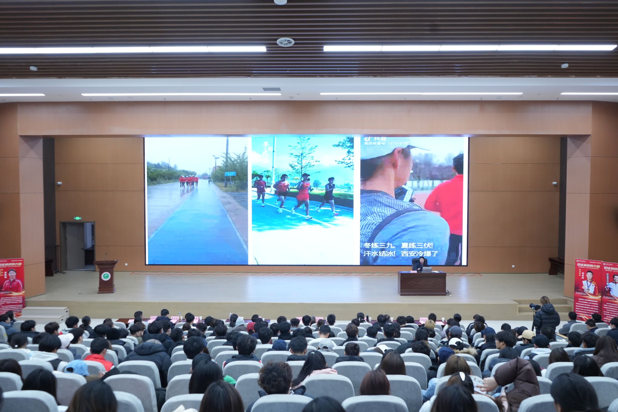 本网讯 为落实立德树人根本任务,弘扬中华体育精神,按照《新时代陕西省立德树人工作指南》要求,发挥我校以体育人资源优势,展示“体育+思政”育人模式的创新实践,12月15日,我校举办“立报国强国大志向 做挺膺担当奋斗者”冠军思政课。活动邀请我校奥运冠军教练蒋秋艳,2008年北京奥运会火炬手、奥运文化传播者刘超英,伦敦奥运会体操项目冠军郭伟阳走上讲台,与师生面对面交流,以真实奋斗故事传递榜样力量,激励青年学子勇担时代使命、奋斗成就梦想。我校党委副书记马海涛出席,相关部门负责人、师生代表参加活动。
