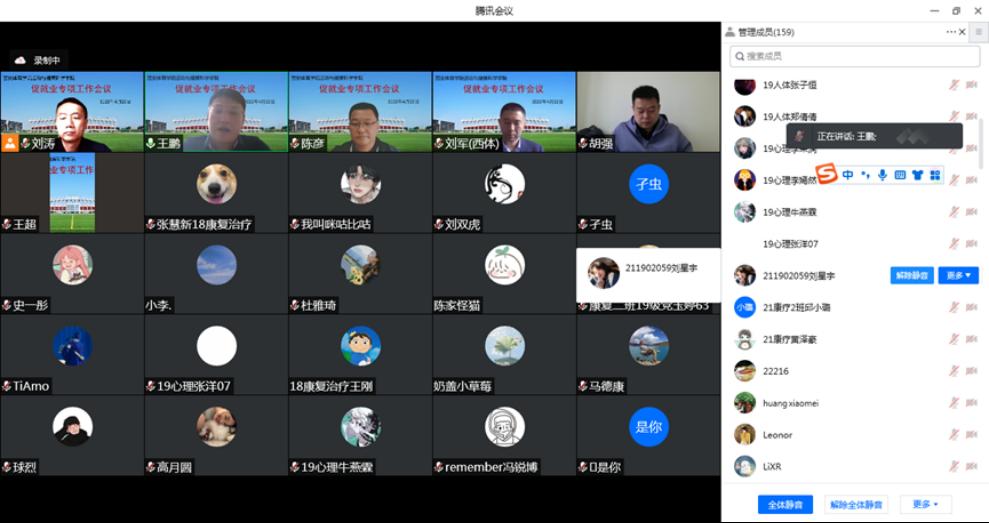 本网讯 为落实2022届全省高校毕业就业工作推进会议精神,为学生搭建就业平台,促进学院就业工作,运动与健康科学学院经过认真筹划,4月22日召开“用人单位大走访,全员联动促就业”线上就业会议。副校长陈彦、运动与健康科学学院党委书记刘勇、院长刘涛,运动创伤医院院长何昌谋,就业指导中心主任王鹏以及学院全体无课老师和2018级全体学生参加会议。会议邀请20余家实习单位代表、10余位优秀校友参加。会议由副院长刘军主持。
