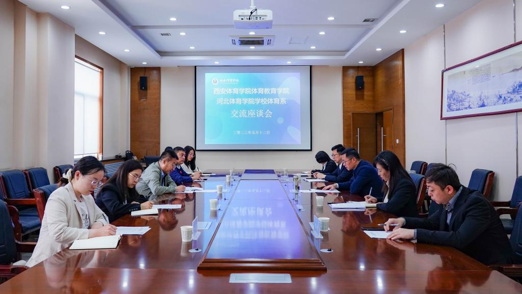 本网讯 5月12日上午,我校体育教育学院与河北体育学院学校体育系交流座谈会在我校二号行政楼召开。河北体育学院学校体育系党总支书记赵智岗,办公室主任邢新阳等一行,我院体育教育学院党委书记高月宏、党委副书记李倩、体育教育专业2020级年级主任李西、辅导员胡斌、特殊教育专业年级主任耿莉参加了本次座谈会。会议由李倩主持。