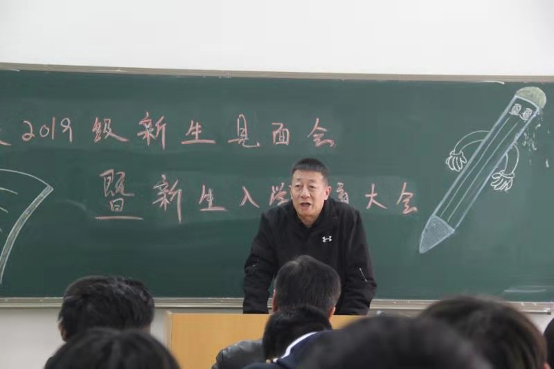 本网讯 11月20日,我校2019级新生见面会暨新生入学教育大会在竞校二楼中一教室召开。本次见面会由辅导员周帅阁主持,出席本次见面会的有校长张文军、书记樊康、副校长纪伟、行政党支部书记党康等校领导、全体教师及新疆内派教师高老师、行政干部及2019级全体中专和预科新生。