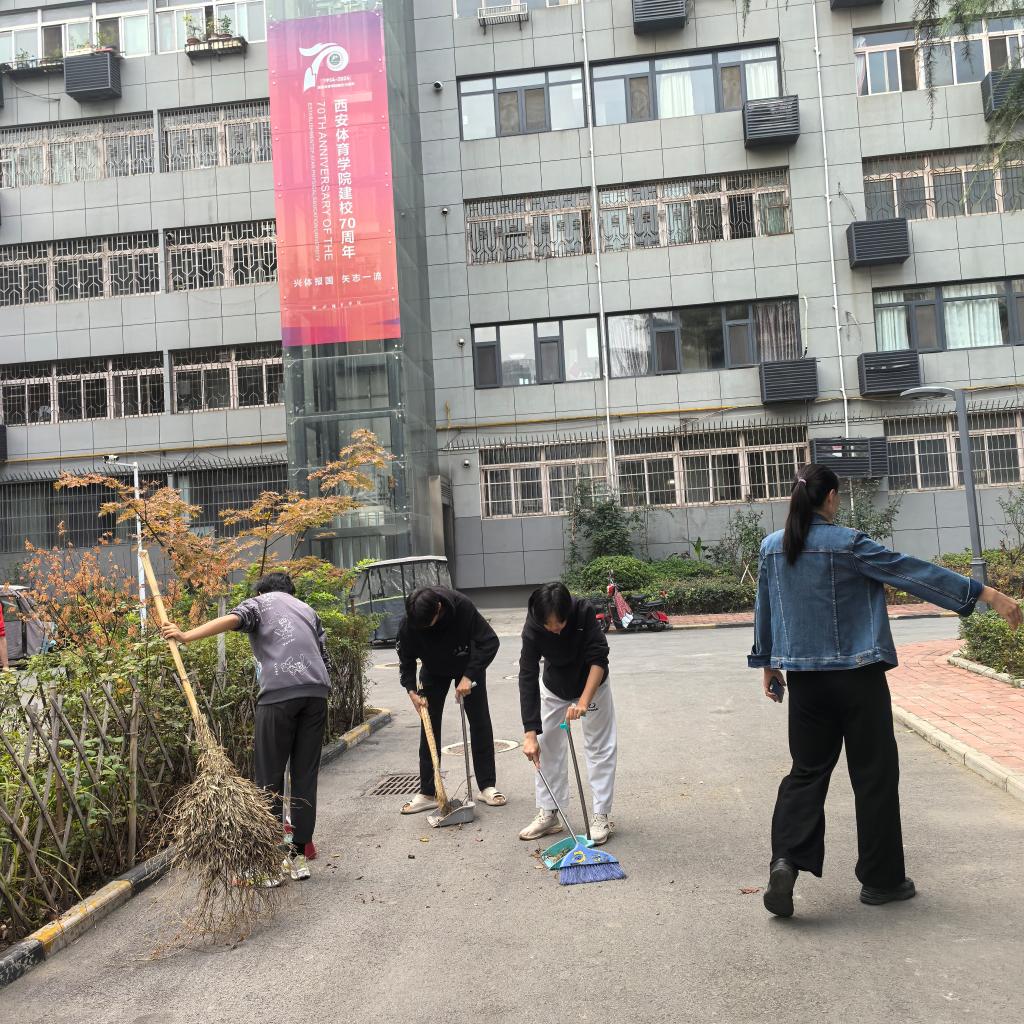 国庆期间,我校跆拳道队学生在训练之余,自发组织学生30余名,在家属区开展义务劳动,清洁环境卫生,创造干净校园,庆祝建校70周年。