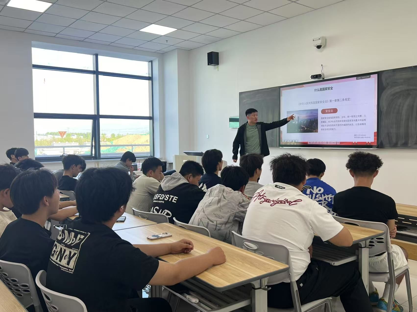 在班会上,辅导员张远老师借助精心制作的 PPT,从政治安全、国土安全、军事安全,到经济安全、文化安全、社会安全等多个维度,深入解读国家安全的丰富内涵。