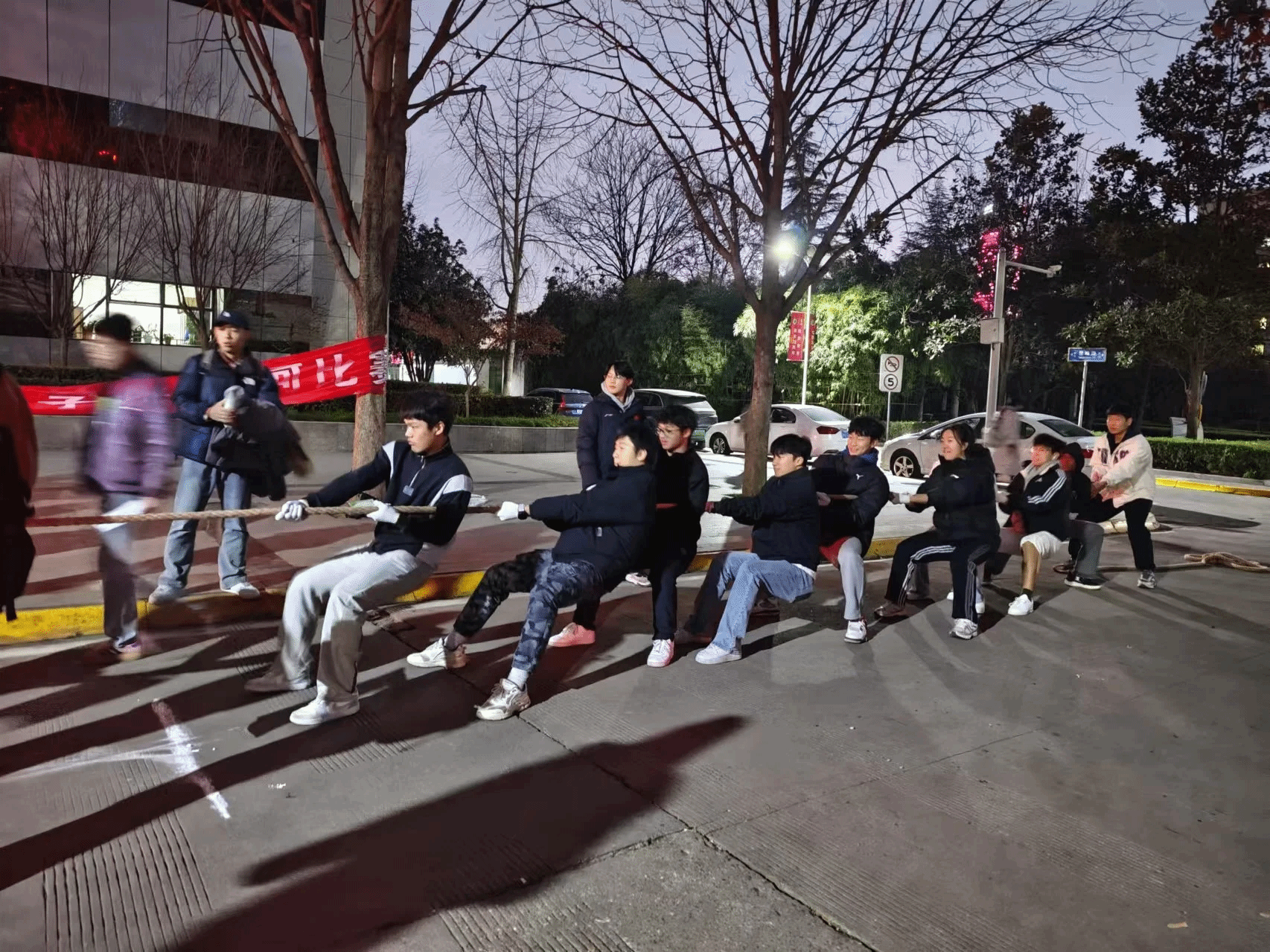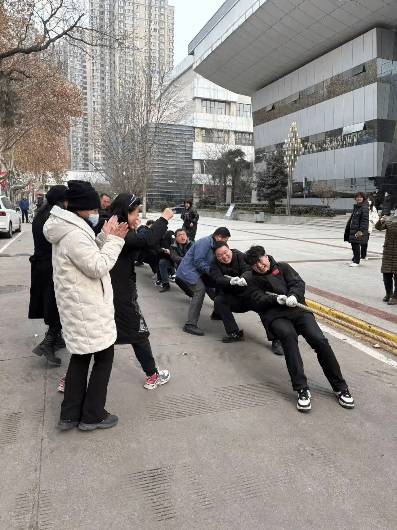 随着比赛的继续,我们于1月3日开展了“拔河友谊赛”。我们可以看到,不仅是学生们,老师们对于比赛也是同等的认真,看他们倾斜的身体,卖力的拉着绳子,身边是加油鼓劲的观众,比赛依旧激烈而精彩。老师与老师之间,老师与同学之间,都透露着集体的努力,众人的配合,在一阵阵呐喊与掌声中化作无穷的动力。