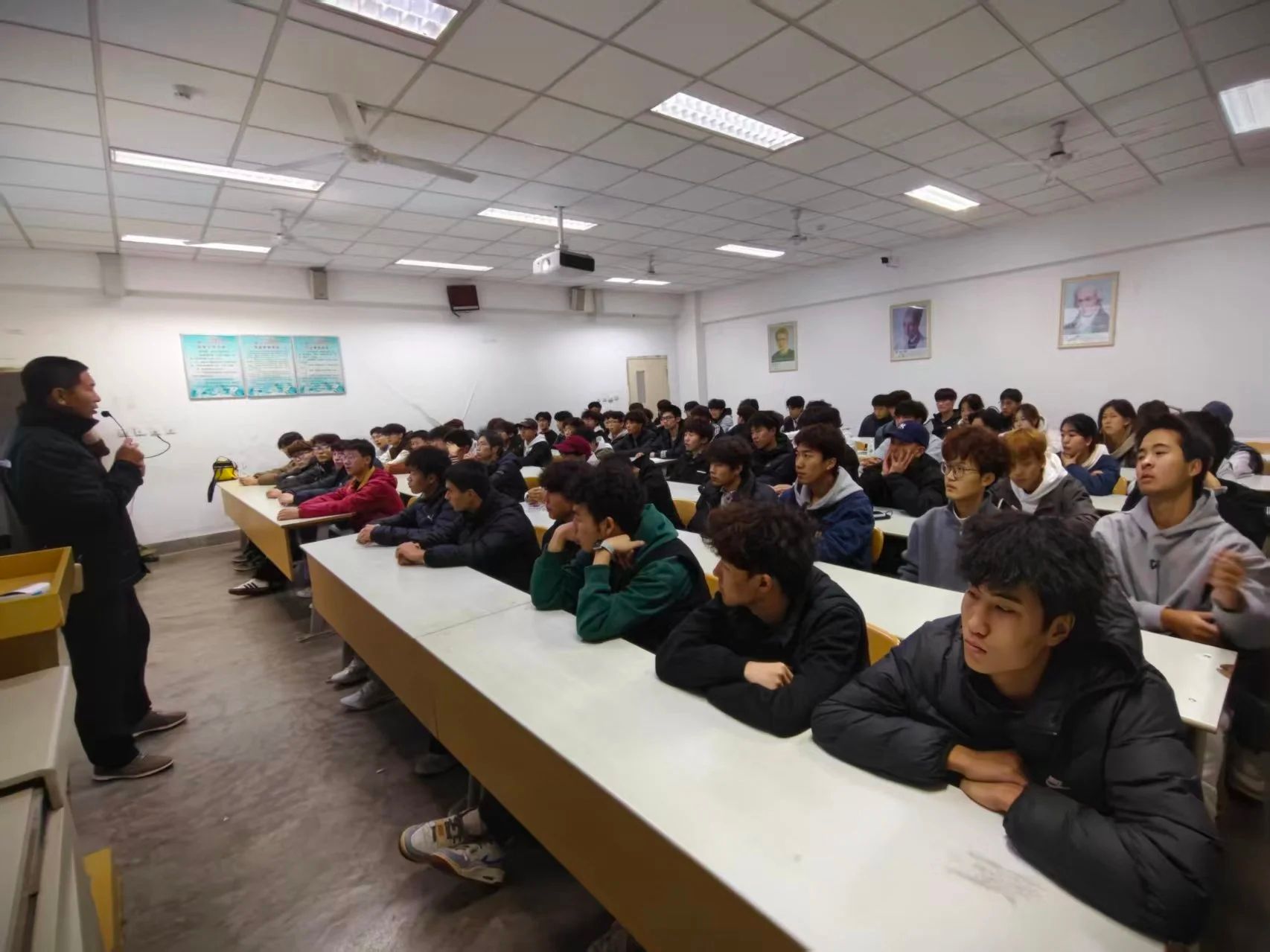 本次讲座于2025年11月6日下午7点在教学楼教室召开,我们有幸邀请到了运动人体科学专业负责人,运动人体科学硕士生导师,运动生理学省级课程思政示范课负责人,全国高校“双带头人”教师党支部书记,运动与健康科学学院院长刘军教授为我们讲授。