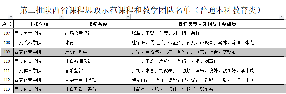 另外,由我院刘远新教授领衔的课程《慢性病运动康复》及所属教学团队同时被认定为第二批陕西省课程思政示范课程和教学团队(研究生教育类)。