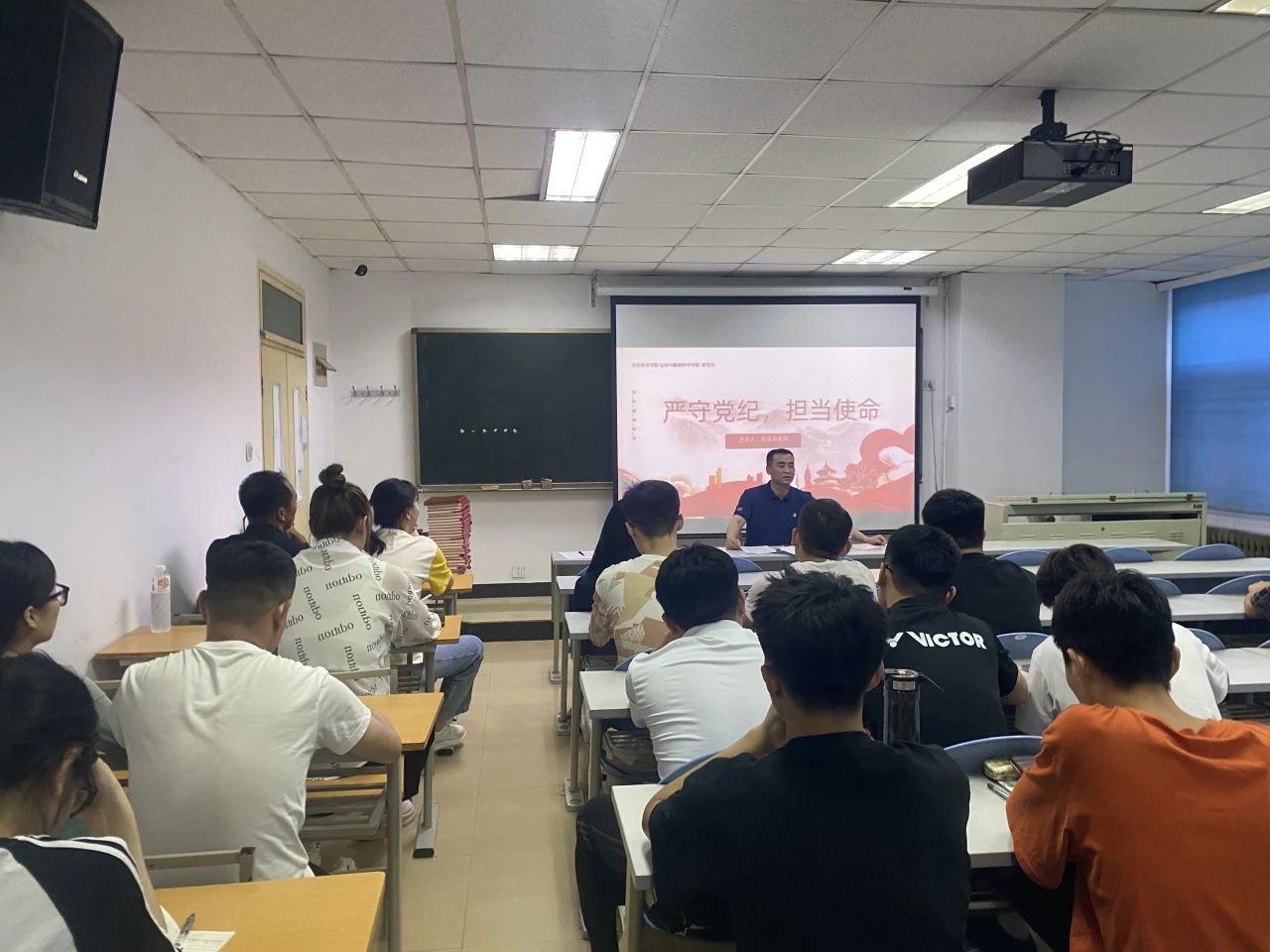 为扎实推动党课学习教育,深入学习贯彻习近平新时代中国特色社会主义思想,于2024年6月11日下午18:00在研究生楼109教室,由运动与健康科学学院研究生学生党支部书记郭运涛老师主持,对运动与健康科学学院全体研究生学生党员展开线下集中党课学习教育。