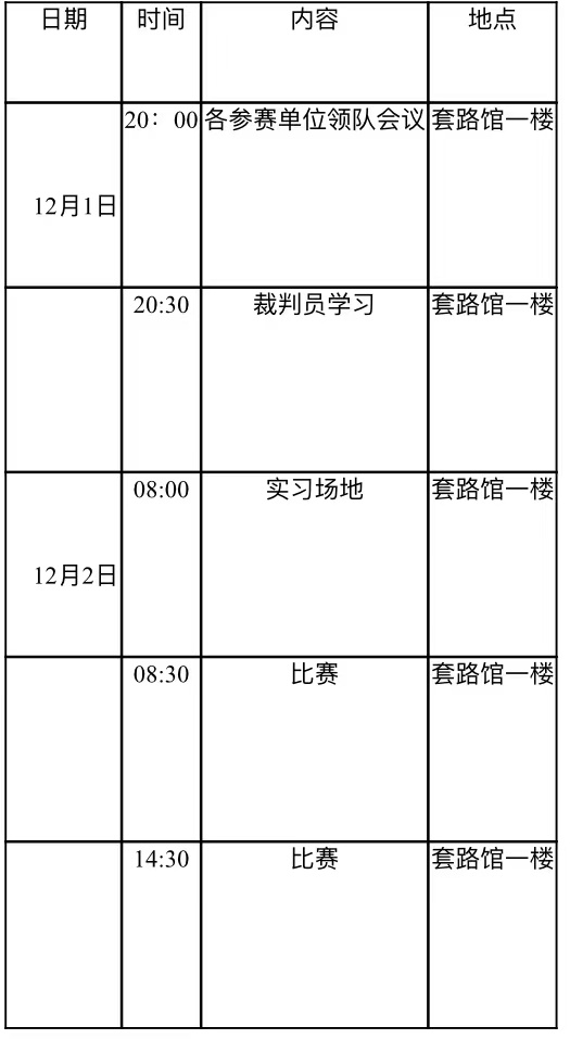 西安体育学院武术套路比赛日程表
