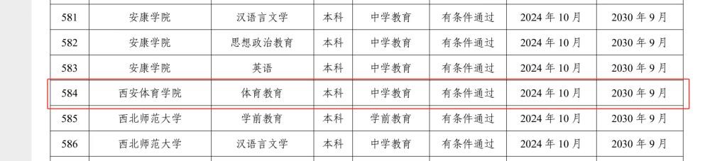 近日,教育部公布了2024年通过普通高等学校师范类专业认证的专业名单,我院体育教育专业位列其中,顺利通过第二级专业认证,认证结论有效期六年(自 2024 年 10 月起至 2030 年 9 月止)。