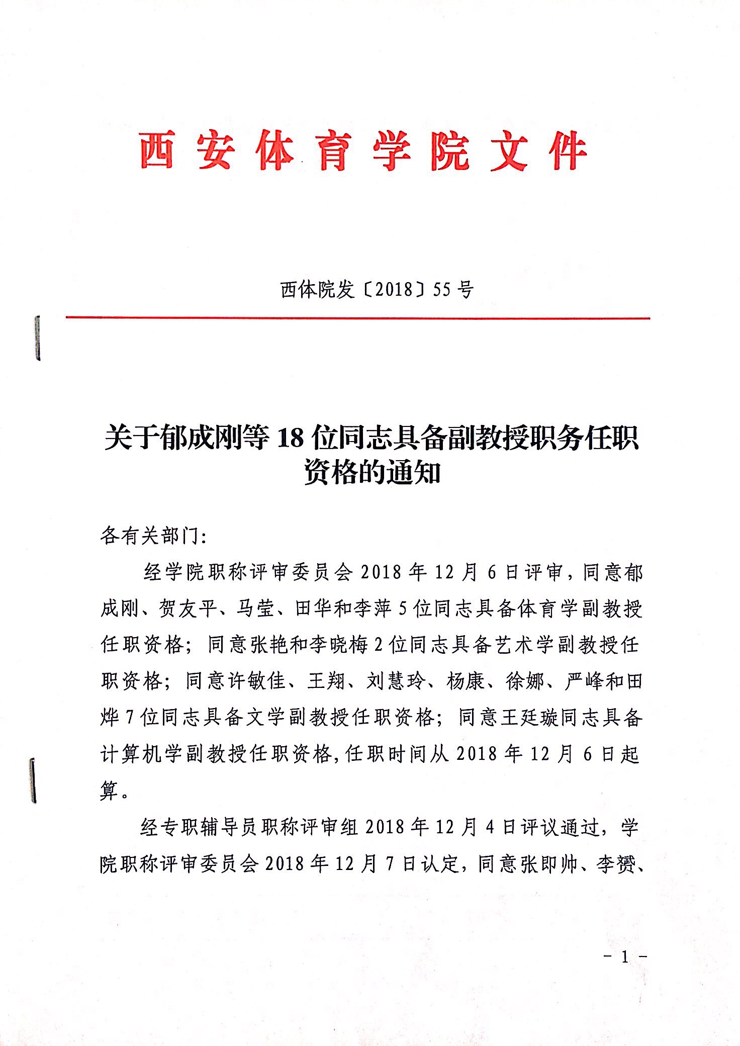 关于郁成刚等18位同志具备副教授职务任职资格的通知