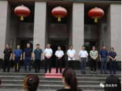 西安体育学院教务处处长张葆欣为足球学院红色先锋支教团授旗