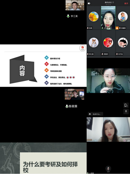 根据中共陕西省委教育工委、陕西省教育厅党史学习领导小组所下发的《关于进一步推进“学习延安精神、西迁精神,办好人民满意的教育”实践活动走深走实》的要求,围绕学校关于“我为师生办实事”为主题的党日活动精神,西安体育学院体育舞蹈教研室党支部于11月25日19:00举行了题为“考研经验分享”的线上会议,会议以我校体育舞蹈专项的优秀毕业生,现就读于全国各个院校的在读硕士研究生,分享关于考研的心得体会,并与我校体育舞蹈专项本科生进行交流讨论为主要内容,为在校本科生提供考研成功经验,帮助学生明确目标,激励学生努力奋斗。会议邀请了西安体育学院艺术学院副院长刘强,体育舞蹈教研室全体教师,舞蹈表演专业国标舞专项140多名本科生参加。