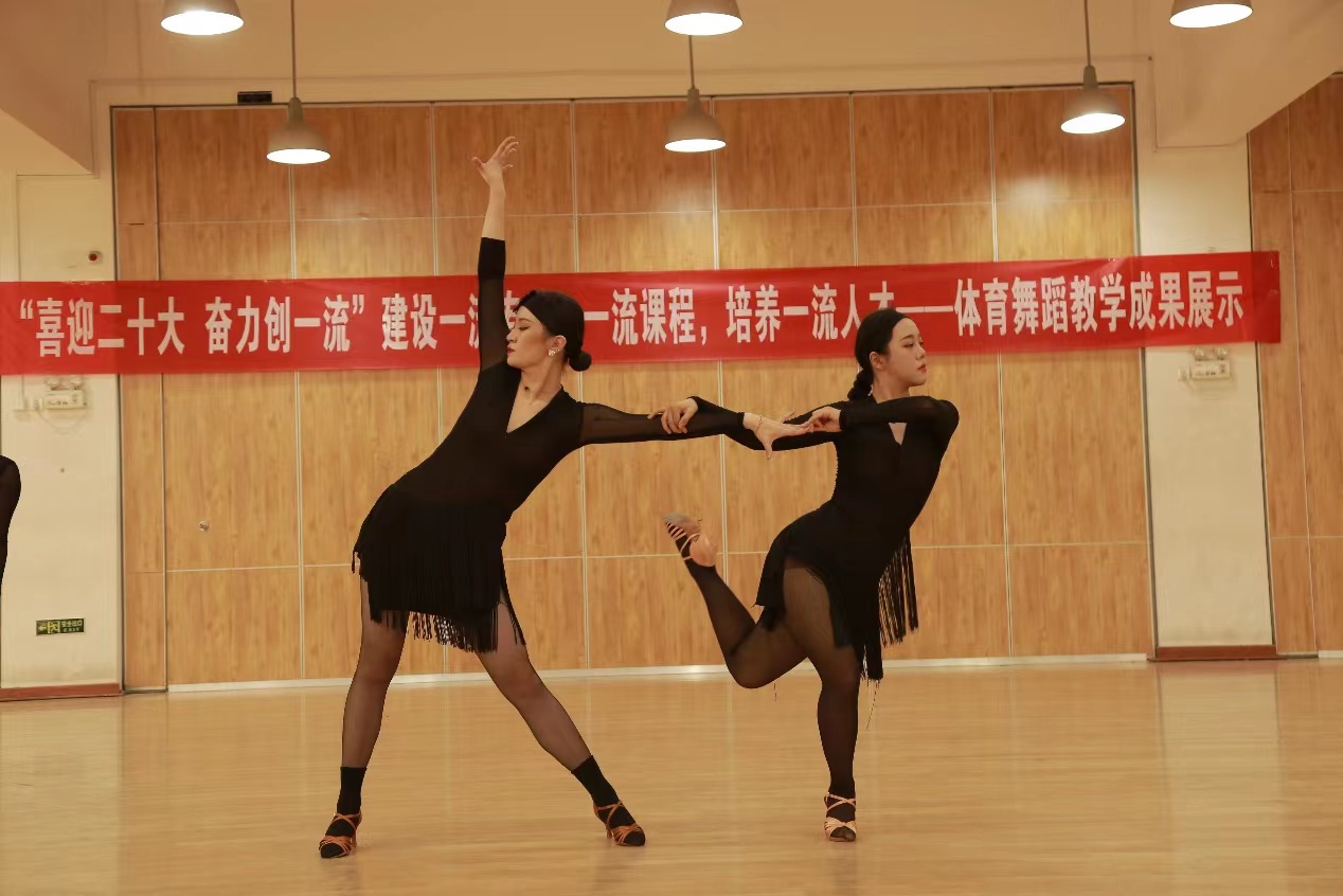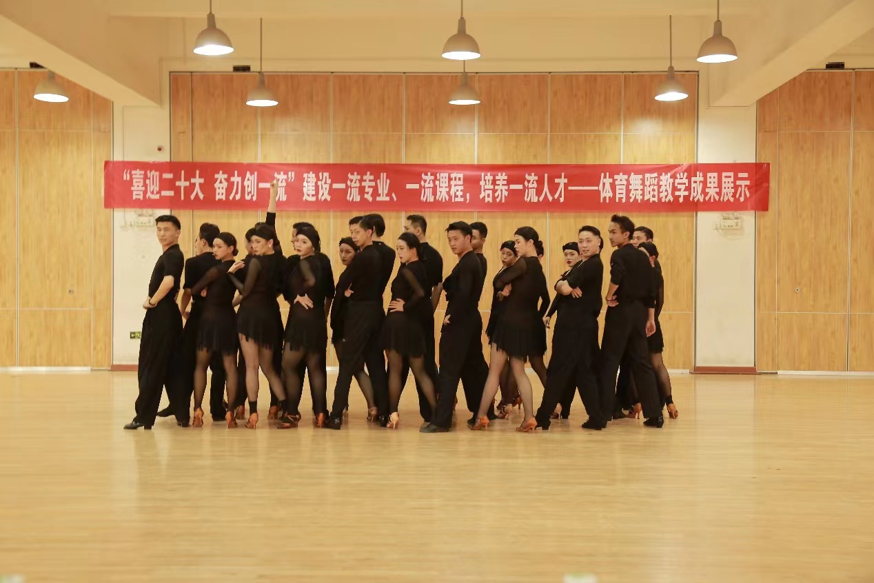 我校舞蹈表演专业于2020年被评为省级一流本科专业,2021年申报国家级一流本科专业,《拉丁舞》课程于2020年被评为西安体育学院首批校级一流本科课程,2021年被评为省级一流本科课程,《标准舞》课程于2021年申报校级一流本科课程。同时发展《体育舞蹈》课程线上线下混合式教学,教学视频已录制完成并上传至“学习通”平台,在进行了2轮教学实践后,视频点击量逐步增加。在双一流建设带动下,我们的教学成果也收获颇丰,近三年来,体育舞蹈方向学生参加各级各类专业比赛并勇创佳绩,专业能力及社会影响力不断增高。我们将继续秉承学校专业建设要求,进一步推动教学改革,不断创新,再创佳绩。