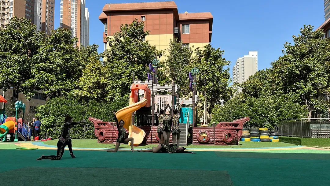 艺术学院大学生体育艺术表演团为五星幼儿园的小朋友们带来了精彩的体育艺术表演,用红色歌曲与排舞结合的形式,讴歌党的领导、讴歌社会主义新时代,营造浓厚的主题学习氛围,同时进一步促进红色校园体育文化推广,深入开展体教融合。