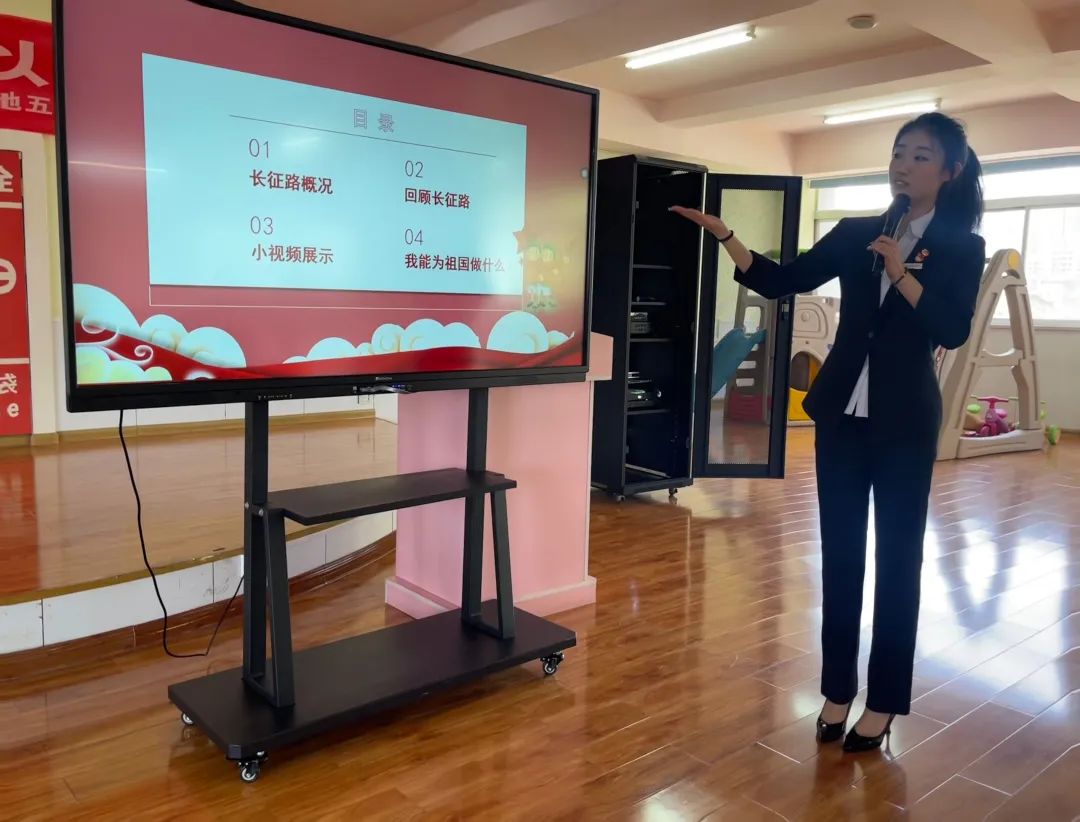 “血战湘江、四渡赤水、飞夺泸定桥……”宣讲中,宣讲员以“重温辉煌党史-长征精神”为题,用丰富的史料、生动的语言向小朋友们讲述了红军二万五千里长征途中一路走来的艰辛和不易。