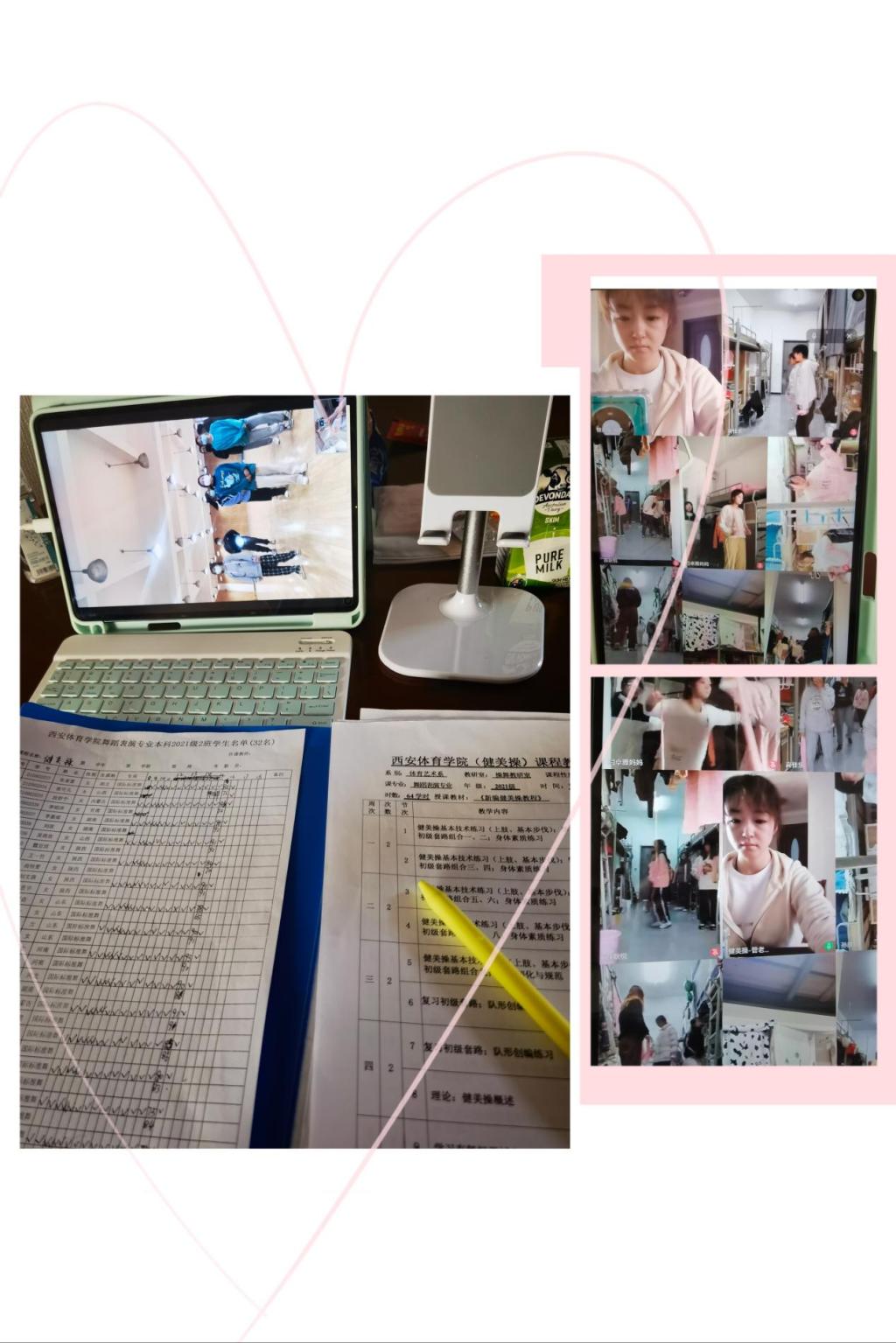 在这段特殊时期,老师们的“主战场”由艺术馆、体操馆、游泳馆转战到了家里的书房,但老师们的兢兢业业、认真负责的工作热情并没有受到丝毫影响。