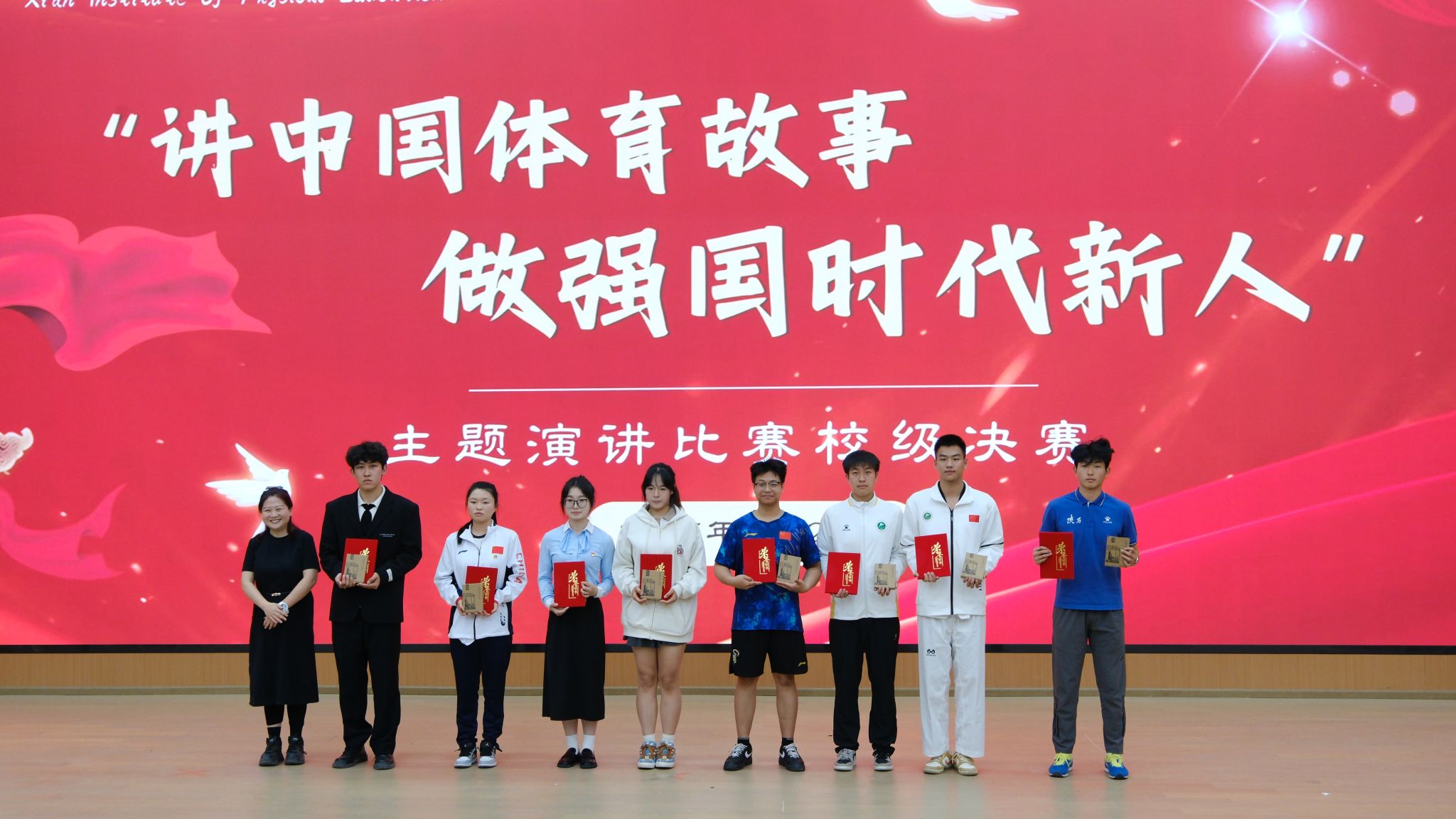 4月25日,由西安体育学院学生工作处、校团委主办,体育新闻与传媒学院承办、各二级学院团委、学生会协办的“讲中国体育故事,做强国时代新人”主题演讲比赛在西安体育学院鄠邑校区圆满结束。本次比赛是面向所有热爱体育文化、弘扬中国精神的全体在校本科生所进行的比赛。旨在弘扬体育精神,增强广大学生的爱国情怀和责任感,同时提升学生的演讲能力和综合素质。体育新闻与传媒学院李亦凡同学荣获本次比赛的一等奖、刘泊延同学荣获本次比赛的二等奖、闫瑾同学荣获本次比赛的三等奖。