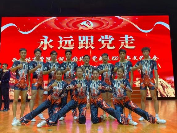 2021年6月30日晚,艺术学院的同学们在西安体育学院庆祝中国共产党成立100周年文艺晚会上精彩亮相,通过艺术的方式表达对党的感恩之心、崇敬之情。