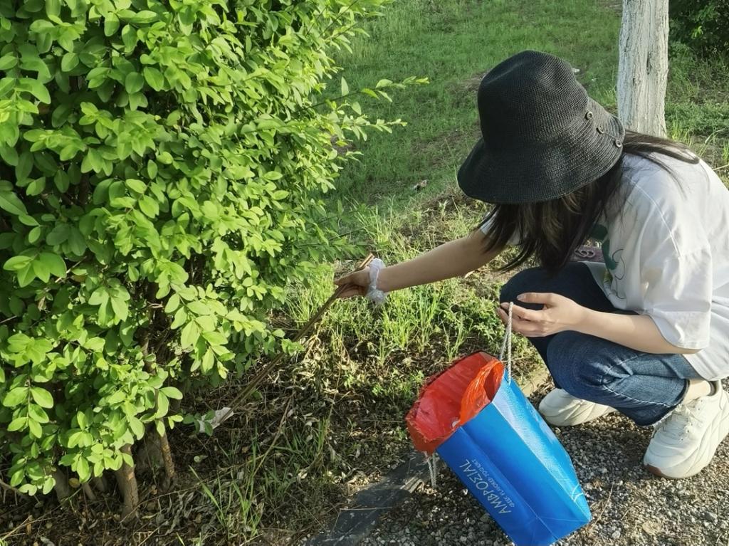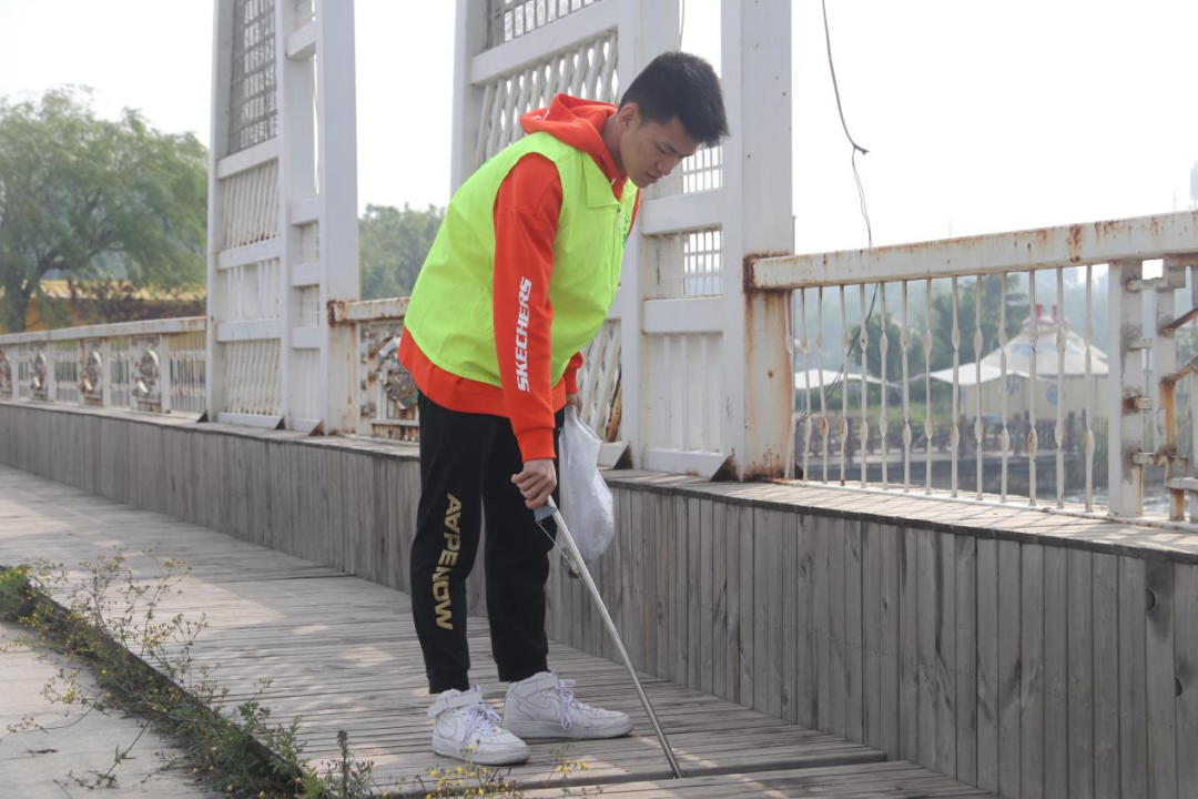 在河提公园捡拾垃圾,不仅美化环境保护水源,也警醒前来游玩的人们不乱扔垃圾,我院师生用实际行动为构建美好社会生活出一份微薄之力。