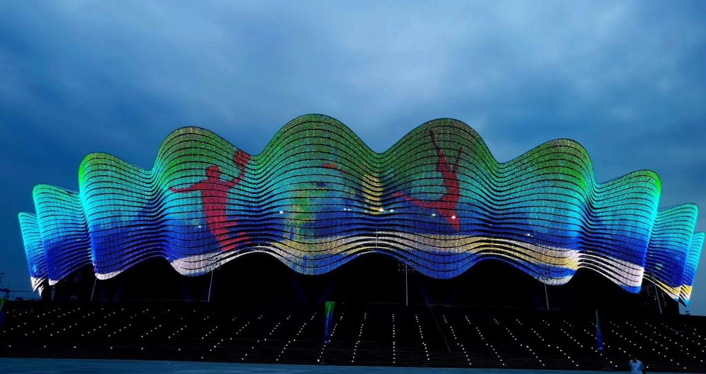 灯光璀璨的西安奥体中心