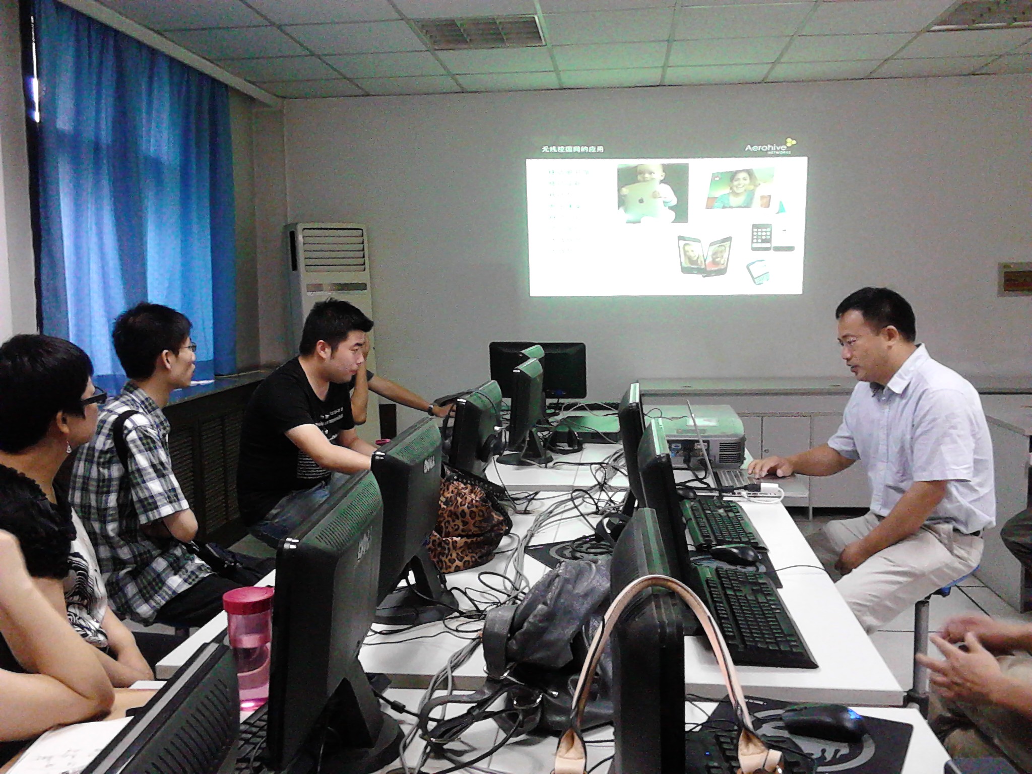 本次活动的培训教师来自Aerohive Networks公司,他们详细介绍了WLAN(无线网络)的发展历史、应用现状及未来发展趋势,阐述了WLAN的工作原理,指出了WLAN的优势,总结了WLAN目前在高校的应用现状与前景等。