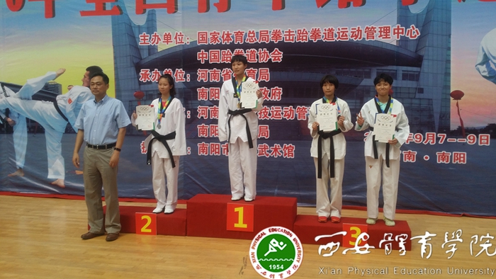 本网讯9月7日—9日,由国家体育总局拳击跆拳道运动管理中心、中国跆拳道协会主办,河南省体育局、南阳市人民政府承办,河南省重竞技运动管理中心、南阳市体育局协办的2016年全国青年跆拳道冠军赛在南阳市体育中心体育馆举行。在省体育局和学院的关心和支持下,我院拳跆中心运动员在此次比赛中为陕西取得1金1铜和一个第五的优异成绩。