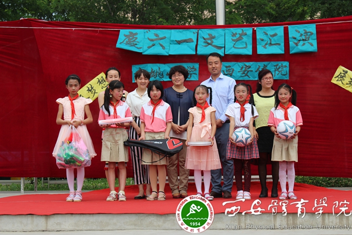体育艺术系给户县余姚小学的学生们赠送了体育活动用品,预祝同学们节日快乐、健康成长!随后,体育艺术系的学生们用童心演绎快乐,整场活动节目精彩纷呈,表演形式多样,全面展现了体育艺术系学生的专业技能水平,加强了两校之间的情谊!也让体育艺术系的同学收获了一份赠人玫瑰、手有余香的喜悦。