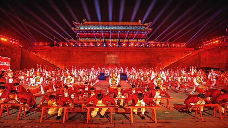 《盛世鼓舞》由著名青年舞蹈家黄豆豆领舞。融合了各种各样的陕西民间传统鼓乐,并将兵马俑、中国龙、战鼓等元素与古老的城墙相互结合,迸发出热爱祖国的民族情感与自强不息的民族精神。而令所有人没有想到的是场面如此壮观的节目编排仅仅只用了三天时间,难度之大可想而知。西安体育学院94名舞蹈、体育舞蹈和表演专业的学生与其他演出团队共同努力为观众们带来了一餐场面宏大、独具陕西文化特色的视觉盛宴。西安作为丝绸之路的起点,《丝绸之路》节目中声声驼铃,还原真实的贸易商队,带领观众回到几千年前那个繁荣壮观的长安。西安体育学院10名学生与其他参演演员一起,在节目最后拉起从城墙上升起的巨幅长绸,让丝绸之路多彩的文化呈现在观众眼前。