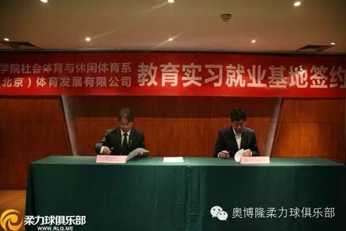随后,郑智伟董事长与郑文海主任代表双方签订就业实习基地合作协议书,郑文海主任向奥博隆(北京)体育发展有限公司郑智伟董事长授牌,双方领导合影留念。签约仪式后,双方还对今后进一步的合作方式、形式进行了商谈并达成了多项合作意向。