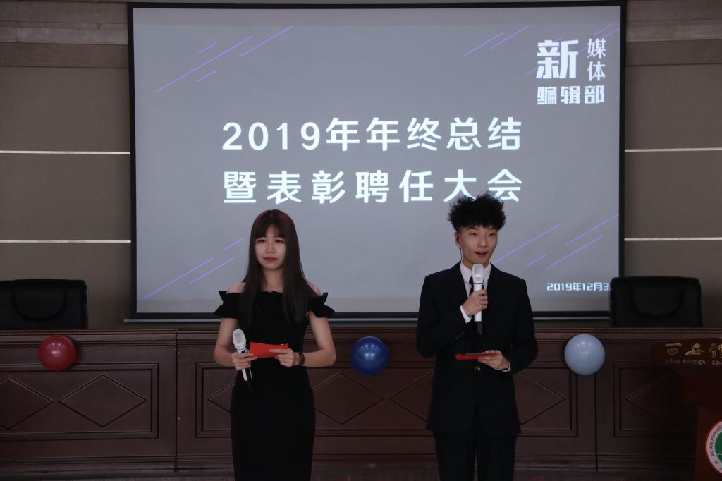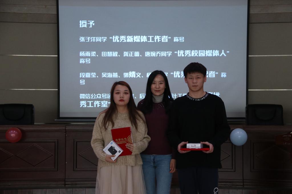 随后,顾彬老师宣读2019年新媒体中心业务技能比拼大赛中获奖名单,倪威胜老师宣读2019年编辑部优秀个人、优秀集体的表彰决定,并由张媛、孙妍两位老师进行颁奖,希望全体成员以优秀集体和先进个人为榜样在新的一年里再创辉煌。之后杨柳老师为新媒体编辑部的45位同学颁发了聘书。