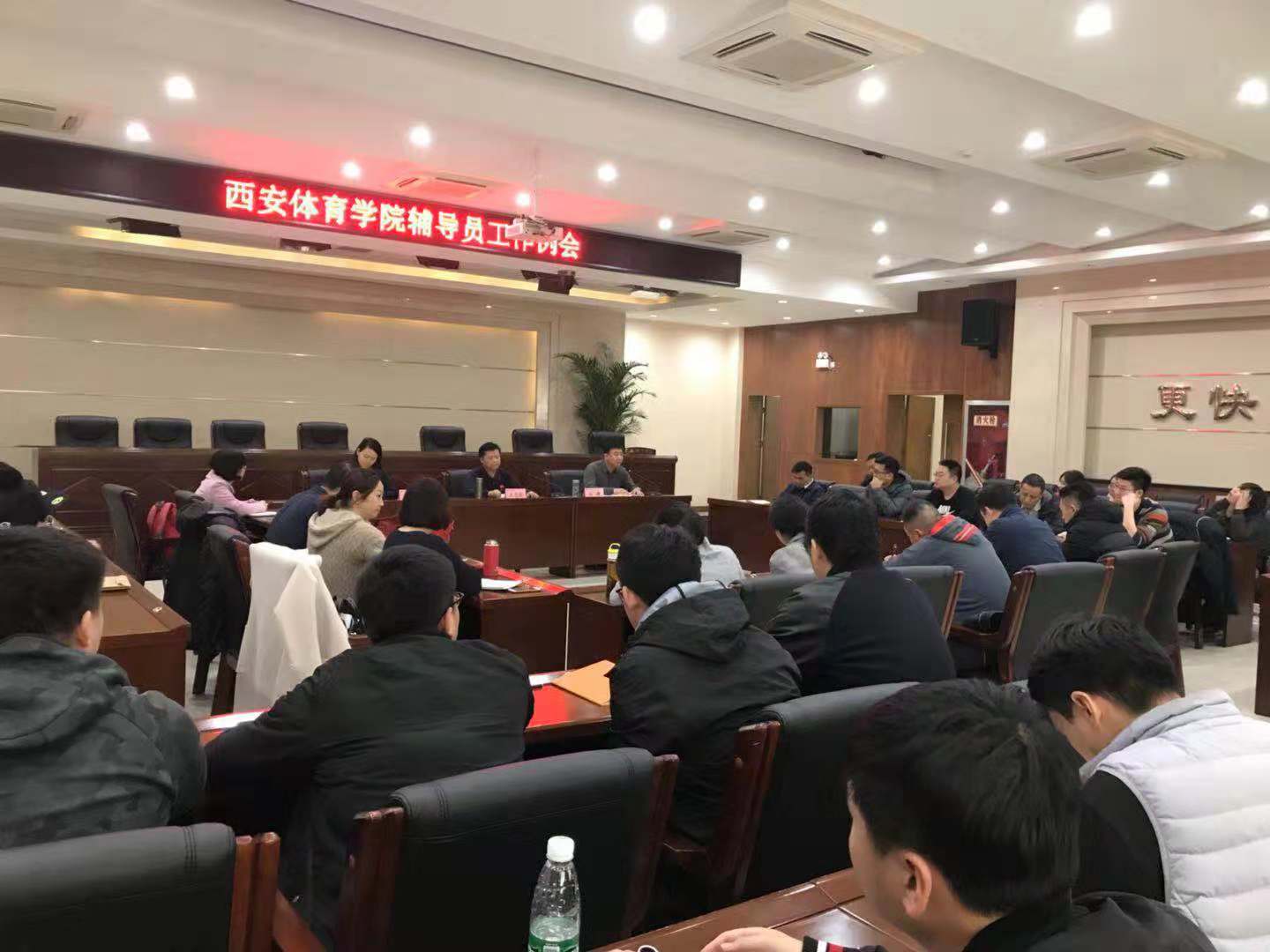 2018年11月29日下午,学工部在二号行政楼6楼报告厅召开全体辅导员工作例会,学工部全体工作人员,各系、部、院、校专兼职辅导员共60余人参加了会议。会议由学工部副部长孙峰主持。