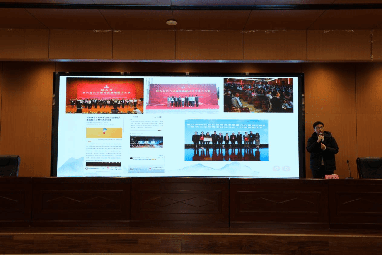 在培训会上,綦玥老师围绕“自强不息、奋发有为、敢闯敢试、敢为人先”的主题,深入分享了自己在辅导员素质能力大赛中的参赛经验、工作反思及个人探索。他不仅详细解读了全国高校辅导员素质能力大赛的赛制,包括基础知识测试、案例研讨、谈心谈话等环节,并结合自身经历为参会辅导员提供了宝贵经验和建议,还着重强调了辅导员在日常工作中的重要性,鼓励大家立足岗位、教学相长、服务学生成长。綦玥老师指出,辅导员需具备扎实的理论素养和业务知识,同时注重实践经验的积累和创新能力的提升,通过案例分析、谈心谈话等技巧的运用,更好地了解学生需求,引导学生健康成长。此外,他还分享了学风建设、国家安全教育、学生心理健康教育等方面的经验和做法,并强调辅导员应密切关注学生动态,及时发现并解决问题,为学生的全面发展提供有力支持。