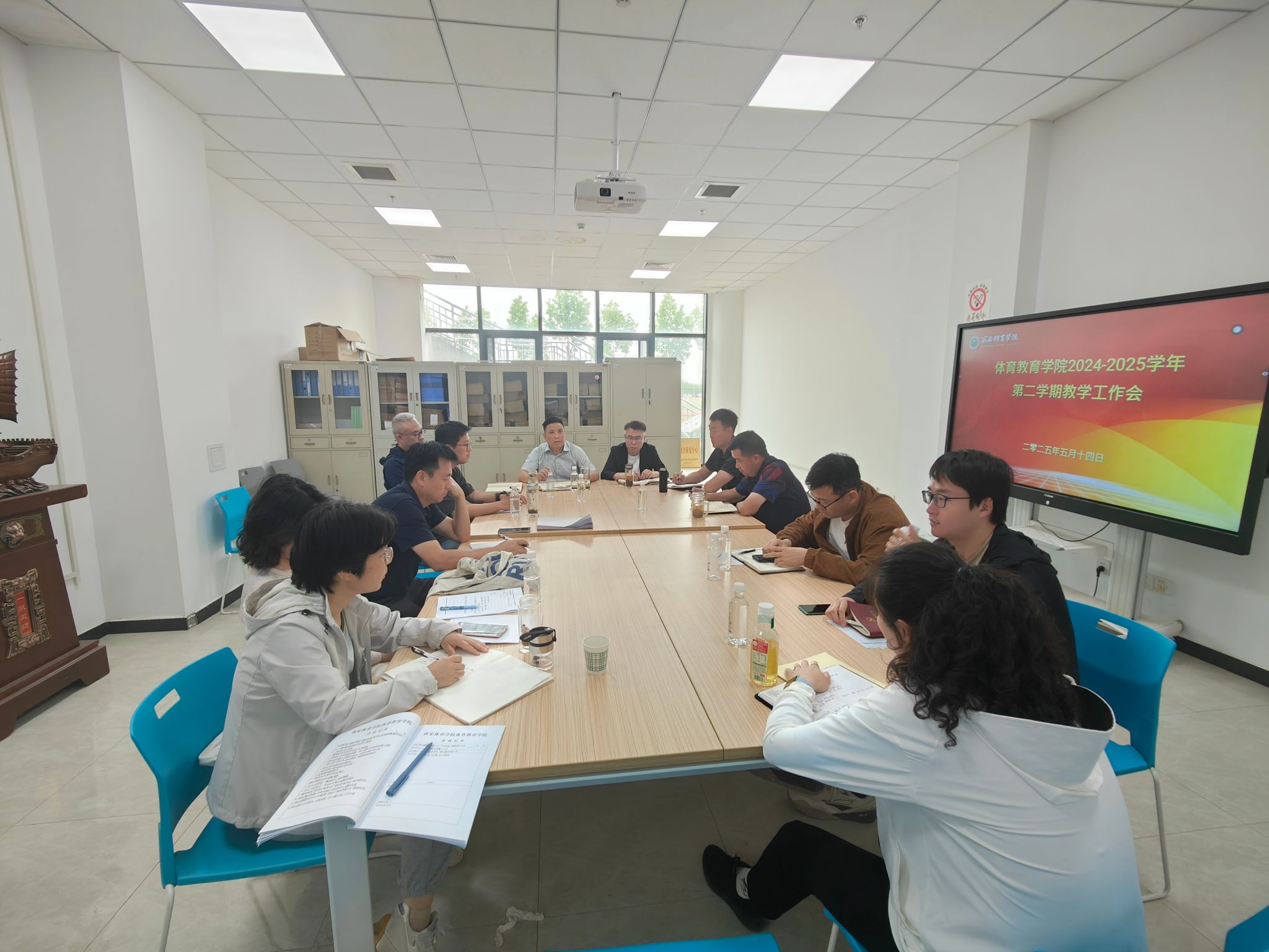5月14日下午,体育教育学院在橄榄球馆110会议室召开了2025年春季学期期中教学工作部署会。会议由学院副院长许磊主持,学院领导班子,全体教研室主任、副主任、党支部书记,各年级主任参加了会议。