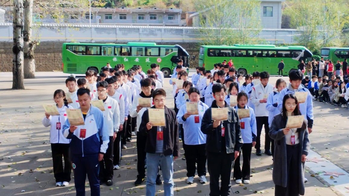 当西体学子踏上奔赴延安的大巴,便开始学习本次活动的第一课《爱国青年奔赴延安》,这场以“圣地行”为名的实践,不再是一次简单的行程——而是一场跨越时空的对话,是一次红色基因的浸润,更是青年与历史的精神共振。
