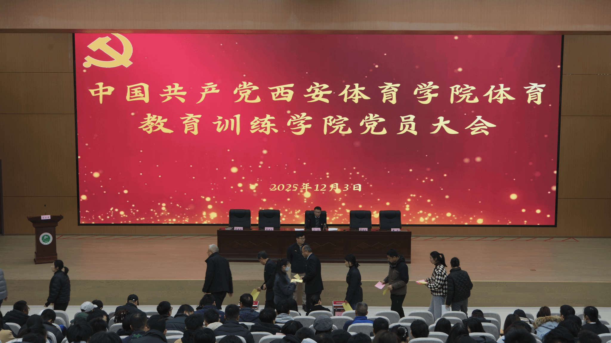 根据《西安体育学院二级委员会(党总支)、党支部换届选举工作实施方案》相关要求,经学校党委批复同意,12月3日下午,体育教育训练学院党委在鄠邑校区图书馆三楼报告厅隆重召开党委和纪委换届选举工作党员大会。学院全体教师党员、学生党员参加会议,会议由学院党委书记卢喆同志主持。