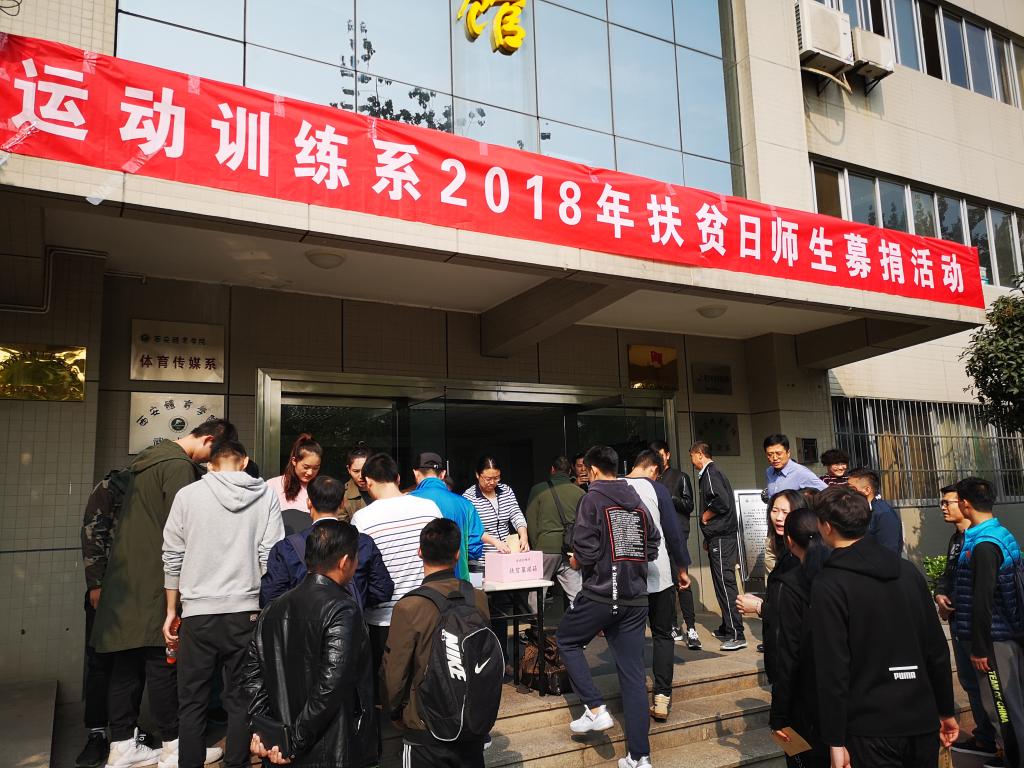 2018年10月17日是我国第5个扶贫日,也是第26个国际消除贫困日。根据《西安体育学院2018年扶贫日活动方案》精神,运动训练系于2018年10月17日下午14点20分在综合训练馆楼下举行了“运动训练系2018年扶贫日师生募捐活动”。我系共有37名教职员工及部分学生参加了本次募捐活动,共筹得善款7316.2元。
